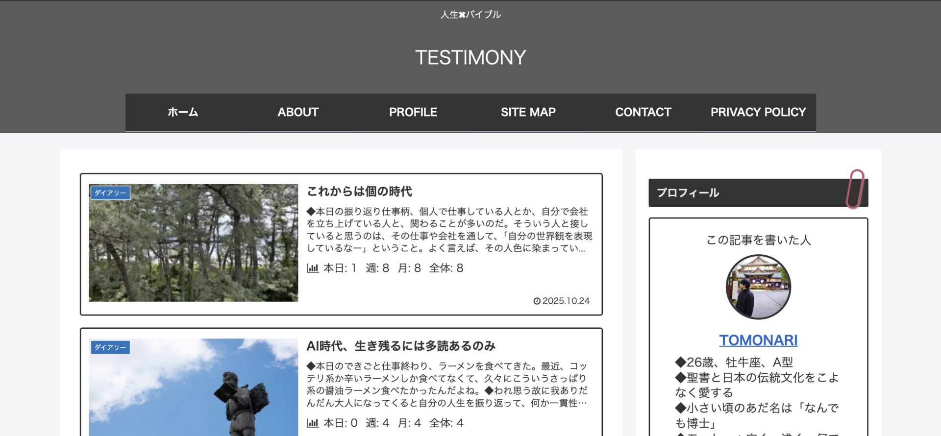 ABOUT 2025.10.192025.11.04 この記事は約1分で読めます。 このブログでは、 自分の証(TESTIMONY)として 読んだ本とかその日の出来事とか 好き勝手に書いていきます。 テーマは「不真面目さ」の時点でくそ真面目